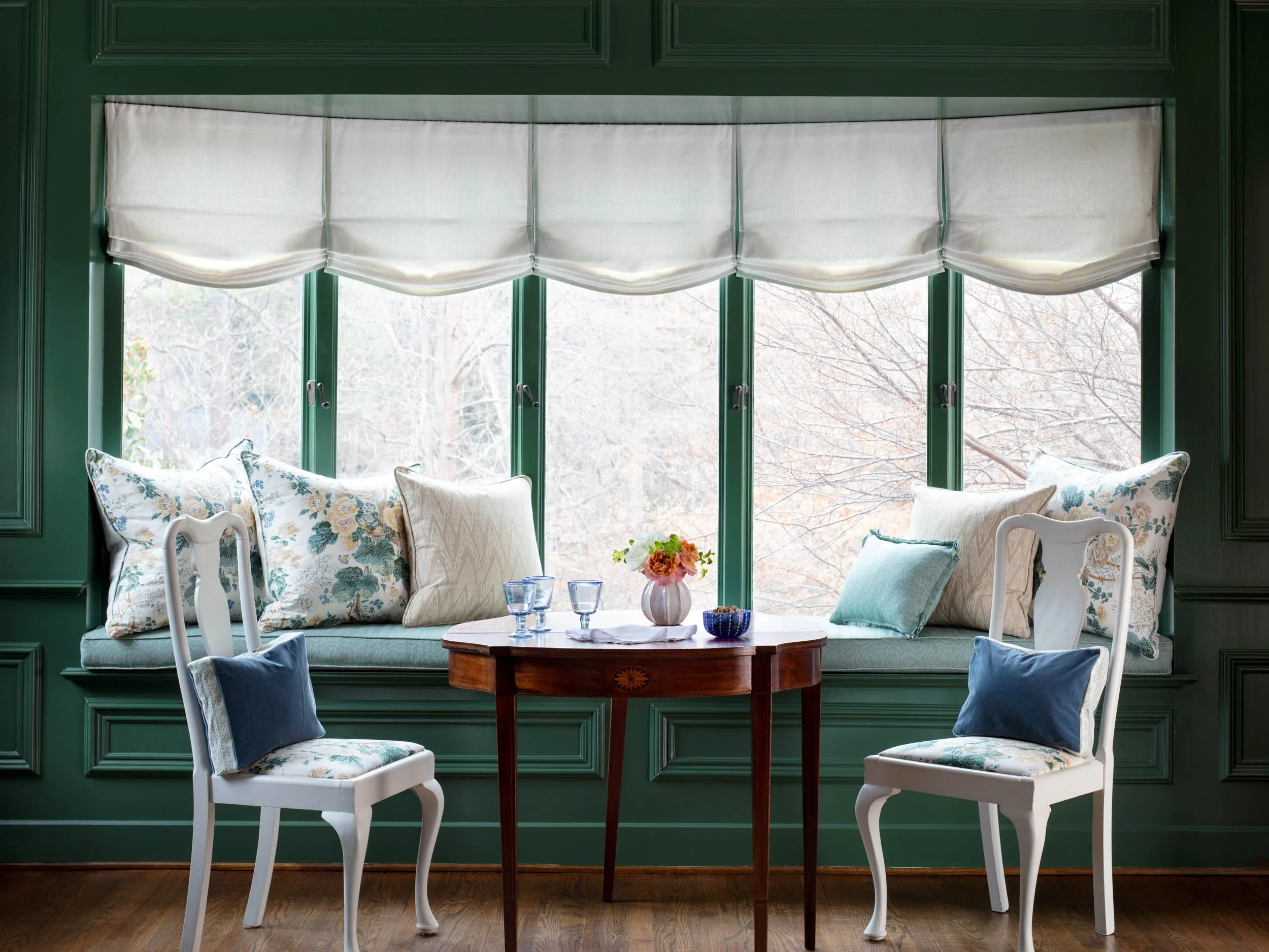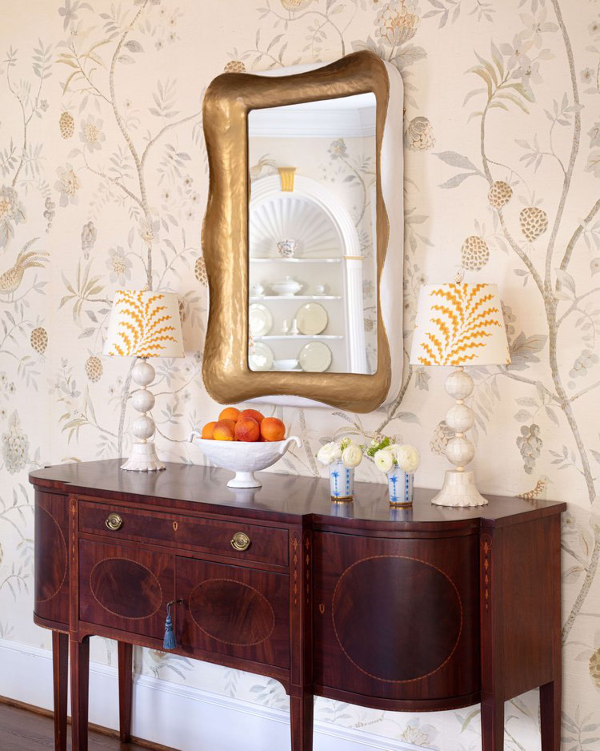 As consummate entertainers, special attention was paid to the dining room with its vining floral grasscloth walls and the den which features an inviting window seat that acts as the perfect perch during a cocktail party.